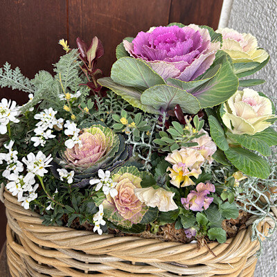 また、別のお店では寄せ植えを購入。こちらはなんと20%オフで手に入れることができ、ちょっと嬉しい気持ちに。玄関先がぐっと華やかになりました