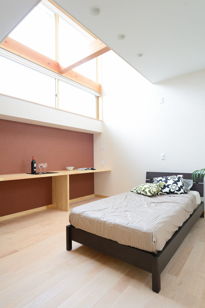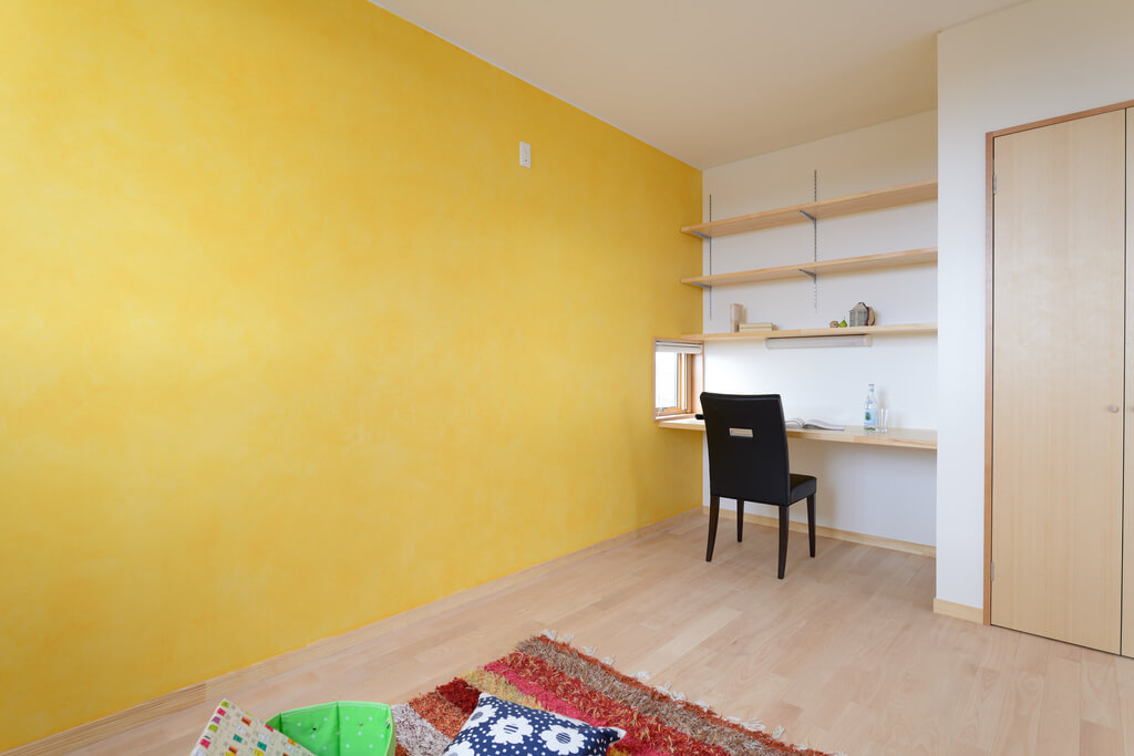 LDKにはヒートポンプ式床暖房を採用。火を使わない安全性と、やわらかな暖かさが魅力です。環境にやさしく、電気代も抑えられます。 寝室・子ども室のアクセントウォールは、施主様ご夫婦がエッグシェルペイントで施工。ご家族参加の家づくりが、思い出と安心感を生み出します。