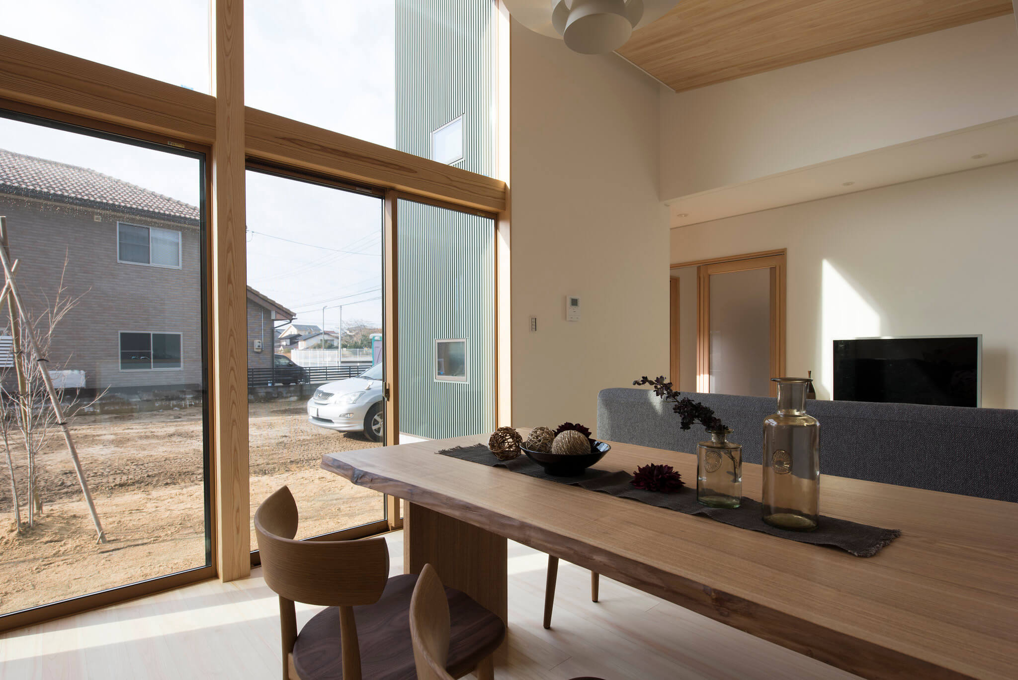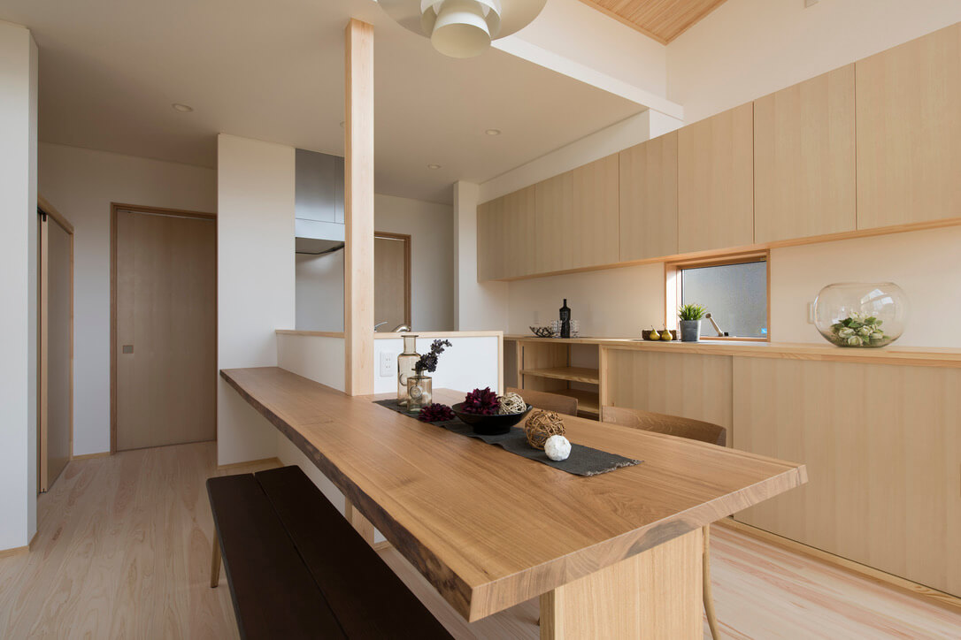 外観はモダン、中に入ると豊かな木質感に驚く家